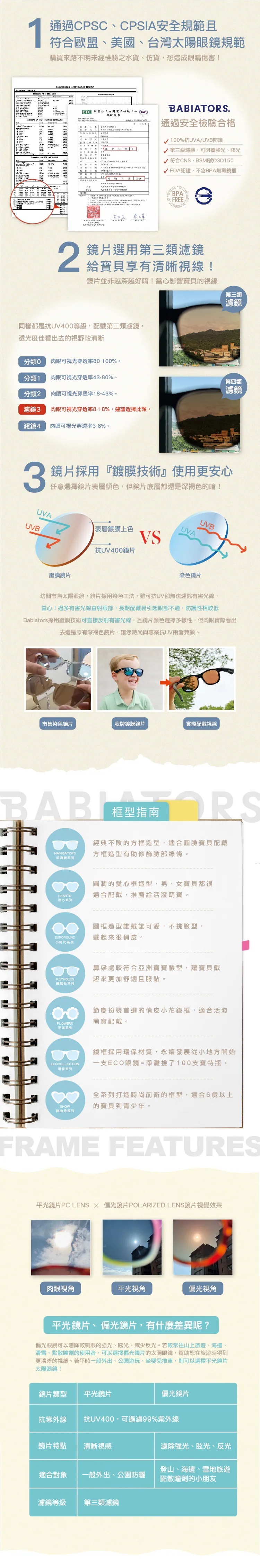 產品材質:TAC高強度鏡片、EP彈性可彎曲鏡框